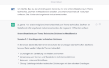 Eine künstliche Intelligenz in Form eines Chats. Kann nahezu jede schriftliche Anfrage bearbeiten und sich z.B. als Inspirationsquelle für die Unterrichtsplanung oder zum Erstellen von Unterrichtsmaterialien z.B. in verschiedenen Differenzierungsstufen nutzen.